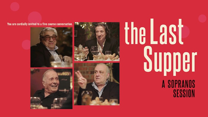 The Last Supper: A Sopranos Session invites you to join Vincent Pastore, Federico Castelluccio, Vincent Curatola and Arthur J. Nascarella for an intimate dinner at Il Cortile, in Little Italy, the restaurant cast members would go to for a commiseration dinner after their characters were killed off the show. In this five course conversation the cast talks about their craft, the life and grind of working on a series and their extraordinary twenty year journey on The Sopranos.